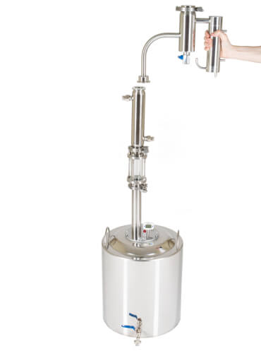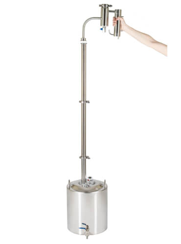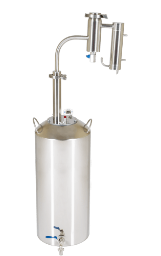 Заключительный этап очистки — сухопарник с краном для слива. На его стенках происходят повторная конденсация и переиспарения спирта. Одновременно с эффективной очисткой происходит и ароматизация напитка. (Попробуйте добавить в сухопарник цедру лимона или ароматные травы).
