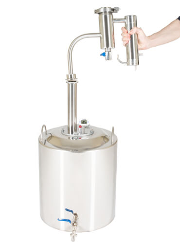 Широкие соединительные трубки диаметром 18 мм и спускной клапан гарантируют полную безопасность при перегонке. Закупорка исключена.